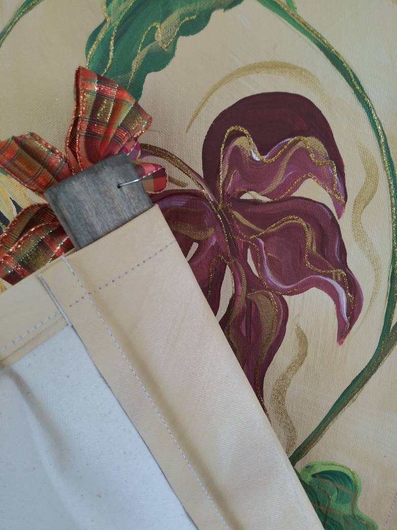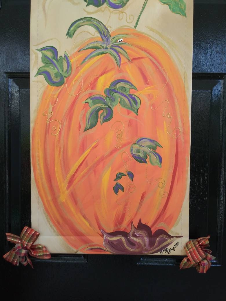 Fall Autumn Door Hanger Hand painted with exterior trim paints on 100% cotton canvas and embellished with glitter puff paint for that little touch of BLING! Canvas measures 16"w x 54"l and is wrapped at the top and bottom edges around an 18" wood and wire display hanger. Each canvas is individually hand painted by me, Stacey Define. There may be subtle differences between the canvas in the photo and the canvas you receive. If you would like a photo of the ACTUAL canvas that I will be shipping to you, just send me a message and I will gladly oblige. DOOR HOOKS with coordinating ribbon (if pictured with the canvas door hanger) are SOLD SEPARATELY.