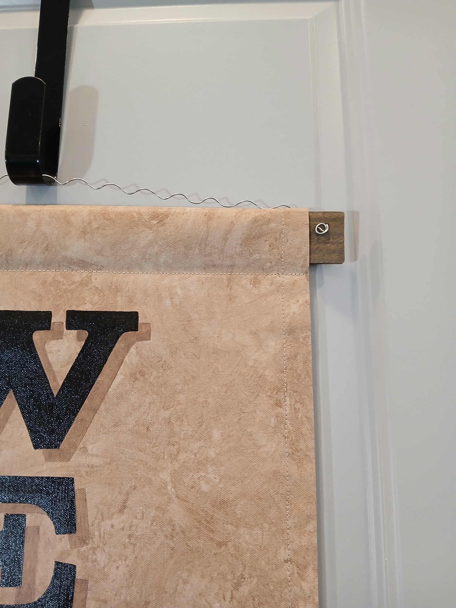 Door hooks with coordinating ribbon (if pictured with the canvas door hanger) are sold separately.