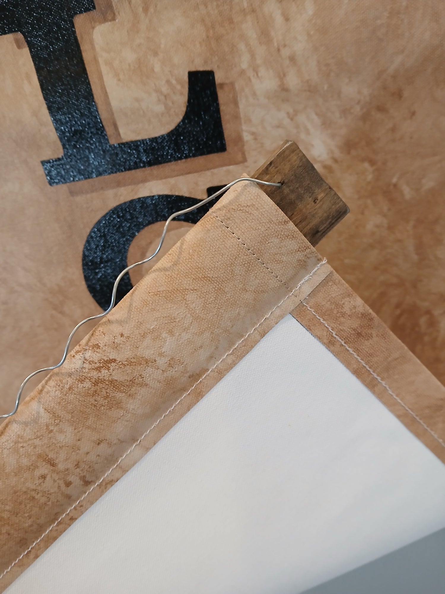 This all-weather door decoration is hand painted with exterior house paints on 100% cotton canvas. The background of the canvas is faux finished to resemble stone. The finished artwork measures 16"W x 36"L and is wrapped at the top and bottom edges around an 18" wood and wire display hanger.